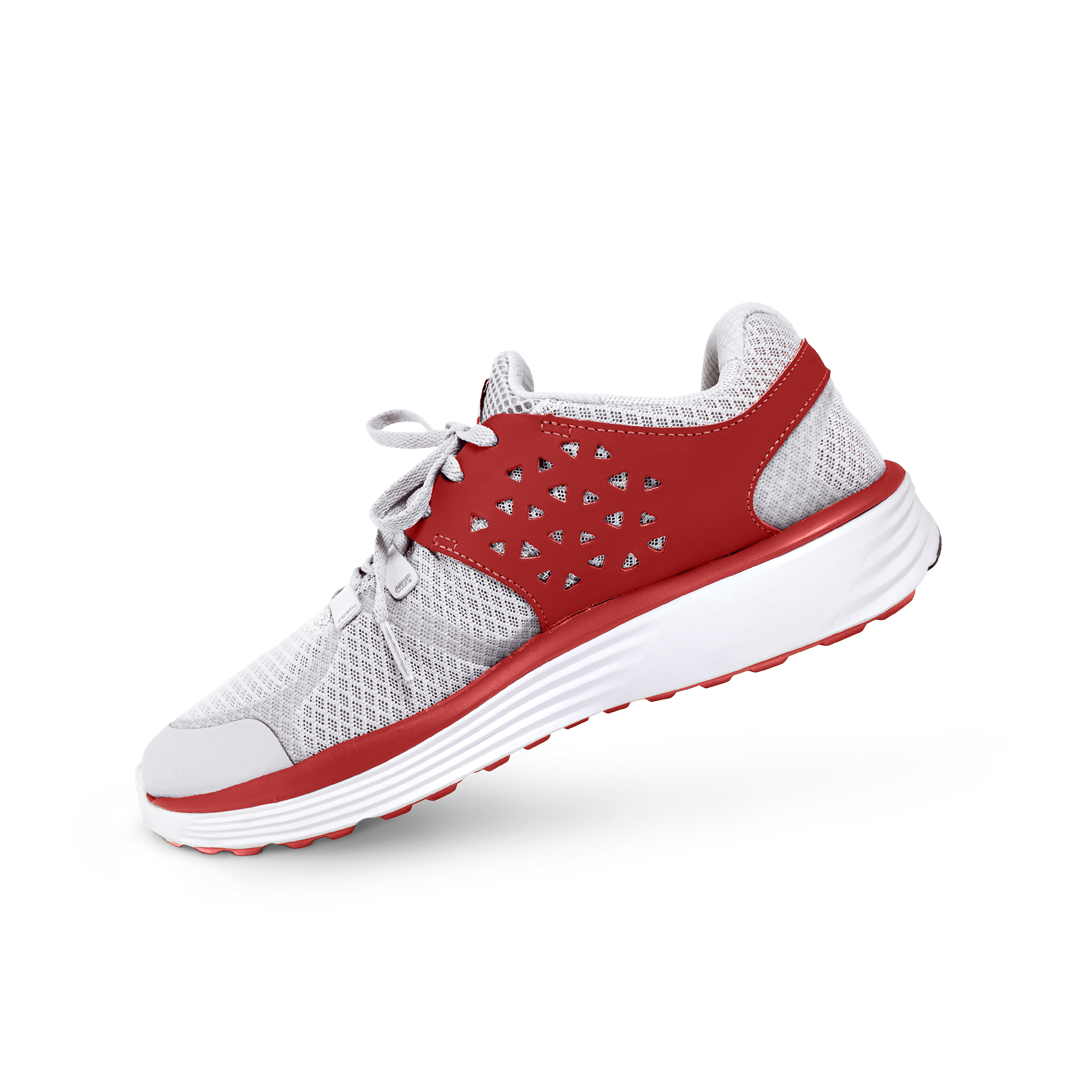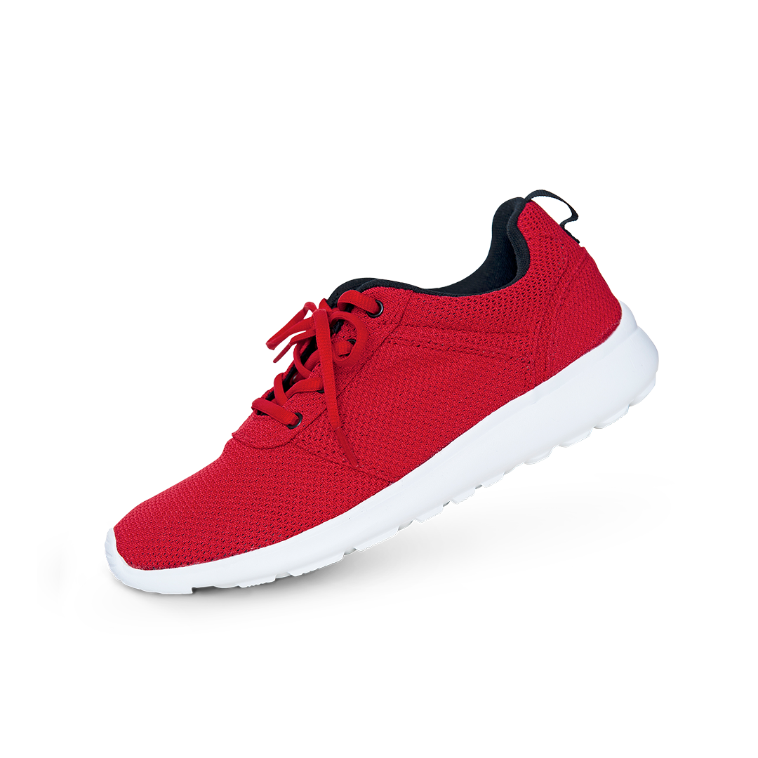 Chaussures de running rouge et blanc.